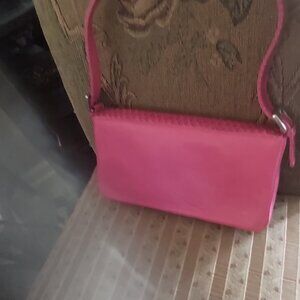 Designed in Spain Beverly Feldman pink snakeskin shoulder bag, magnetic closure, satin lining, zipper pocket interior, great condition.