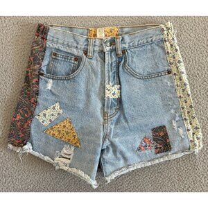 Vintage Beverly Hills Denim Shorts Sz 27 High Waist Patchwork Boho Festival