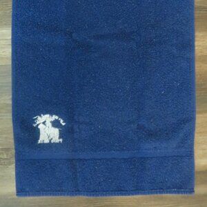 Nice - Vintage Early 90's Beverly Hills Polo Club Hand Towel - Dark Blue - 100% Cotton - Presidential by Leshner Series - Was given to me as an Apartment Warming Gift well over 30 plus years ago - Girlfriend at that time bought them to decorate my Bathroom - Never used it - Wasn't allowed to - Sat on Ring as decoration only - It's been boxed away in storage for years - Time to sell - Pass it on - Thanks!