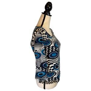 Vintage Beverly's Beaded Embellished Evil Eye Print Blouse Women's Size Medium