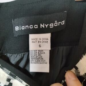 Vintage Bianca Nygard Sz 6 Black and White Houndstooth Curved Hem Pencil Skirt