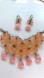 Vintage Bib Necklace Dangle Earring Set Peach Pink Gold Tone Coldwater Creek 21"