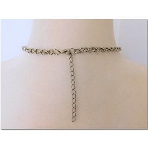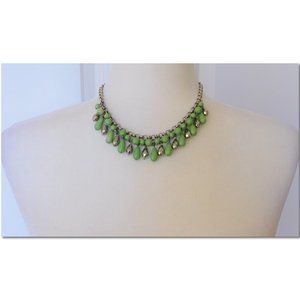 Vintage Boho Style Chain Link Bib Necklace with Green & Silver beads. Adjustable