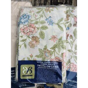New unopened Bibb sheets. Set contains double/full fitted sheet, flat sheet and two standard pillowcases. Fitz mattress 54x75 inches. No iron longer wearing combed percale, 50/50 blend, floral pattern., accented with lace.