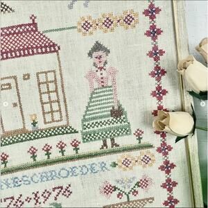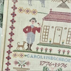 Vintage Bicentennial Cross Stitch Needlepoint Sampler Women’s Day Framed Glass