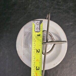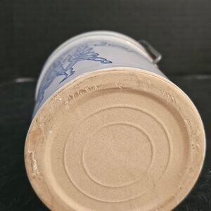A 1776-1976 bicentennial vintage gray crock. It has a blue featured scene with three colonial marching men and the words 1776 spirit of 76 1976. This crock is in good condition with the wire bail handle and seal in good condition. There are a couple of minor manufacturer flaws on the crock lid. See my photos with pin. Measures 5.5 inches with metal bail and 4 1/4 inches without 3 1/4 inch in diameter. Rare fine from 1976. Non smoking pet free home.