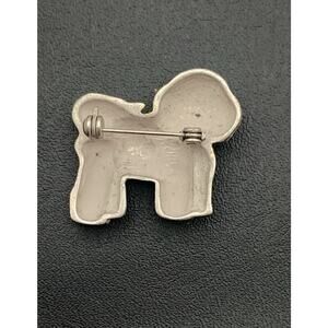 Vintage Bichon Frise Puppy Dog Brooch Pin Frosted Silver Tone Gold Tone Collar
