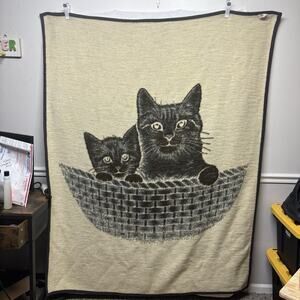 Vintage Biederlack Cats In a Basket High Pile Acrylic Blanket Tapestry 55”x 75”