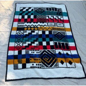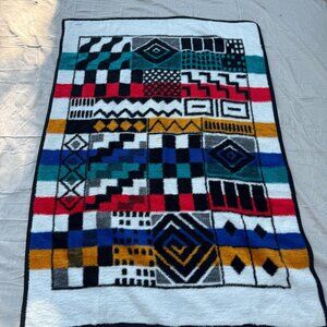 Vintage Biederlack Geometric Chaos Reversible Throw Blanket Southwest Abstract