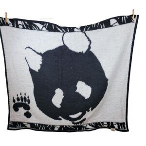 Vintage Biederlack Panda Face Fuzzy Fleece Blanket Plush 52" X 47" Warm Throw