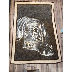 Vintage Biederlack Twin-Size Reversible Tiger Blanket Brown Cream