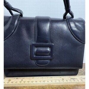 The Vintage Bienen Davis Navy Accordian Style Handbag is a classic and stylish accessory for women. Made in the United States, this original purse features a beautiful blue color that adds a touch of sophistication to any outfit. The accordian style design is both practical and unique, making it a standout piece for any vintage enthusiast. The Bienen Davis brand is known for its quality craftsmanship and timeless aesthetic, making this handbag a must-have for those who appreciate vintage accessories.