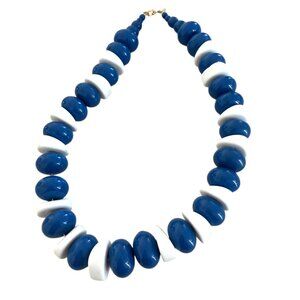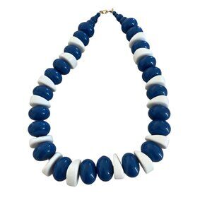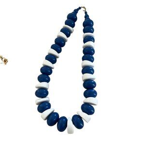 Vintage Big Bead Blue White Monet Necklace Plastic Chunky 80s