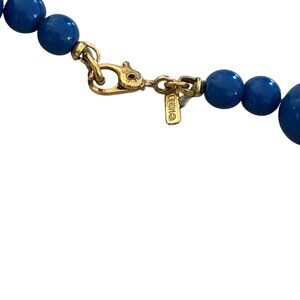 This chunky, fun necklace is a Monet design. The necklace features a pattern of large blue and white beads. It closes with a lobster clasp and is signed ©MONET on the rectangular hang tag. The necklace measures approximately 19”. It is in excellent vintage condition.