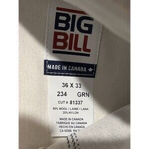 Vintage Big Bill Pants Mens 36x33 Wool Nylon Forest Green Cargo Trouser Camping