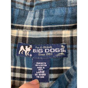 Vintage Big Dogs Shirt Men Large Blue Plaid Button Up Cotton Button Down Y2K
