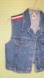 Vintage Big Time denim vest with red, white, and blue accents on the shoulders and sides.