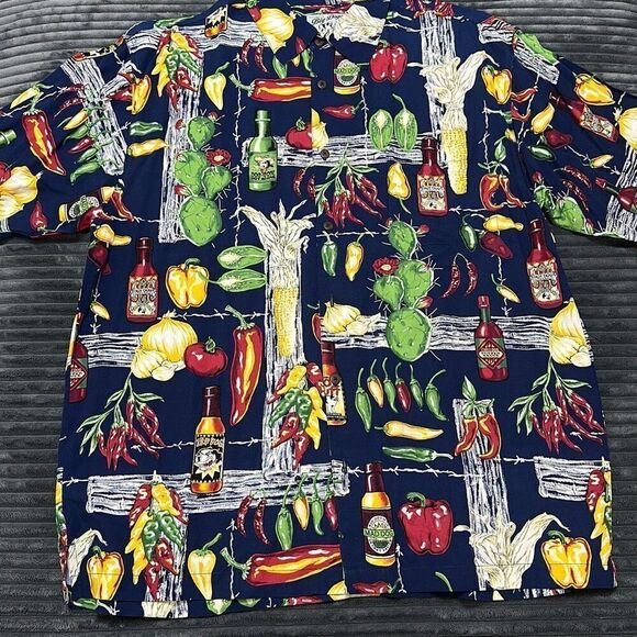 Vintage Big Dogs Hawaiian Short Sleeve Shirt Hot Sauce Peppers Men’ Size L. Please see photos for measurements.