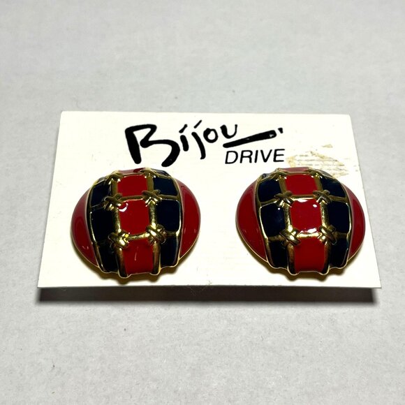 Vintage Bijou Drive Red Blue Enamel Clip On Earrings