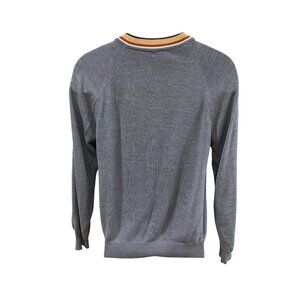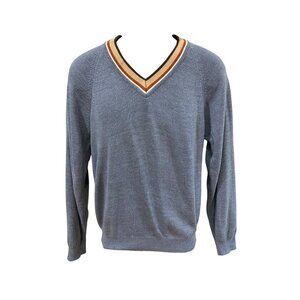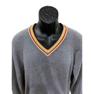 Vintage Bike Gray V-Neck Sweater With Striped Collar Men’s Size Small