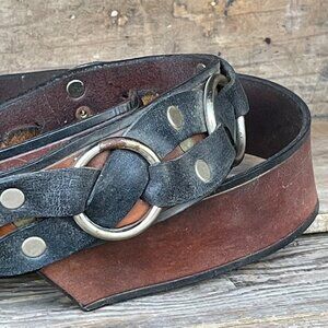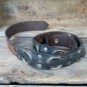 Vintage Biker Motorcycle Belt Leather Strap Black / Brown with Rings & Rivets