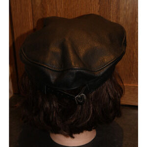 Vintage Biker Motorcycle Black Leather Cabbie Captain Cap Hat Strapback USA Made