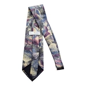 This vintage Bill Blass 100% silk tie features a bold abstract floral print in a dreamy palette of purple, navy, and beige, perfect for adding retro flair to any suit. Crafted with luxurious silk, this statement necktie showcases an allover watercolor leaf design, ideal for collectors and fashion-forward dressers. Whether you're dressing for a wedding, a business event, or simply want to stand out, this designer tie delivers elegance with a 1990s edge. A classic piece from an iconic American fashion house.