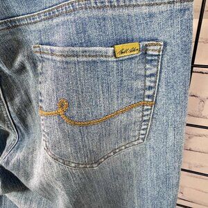 Classic and comfortable, these Bill Blass bootcut jeans offer everyday ease with a flattering silhouette. Designed in a light wash with golden embroidered back pockets, they add a touch of vintage flair to your denim collection.