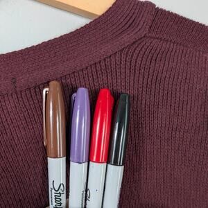 Vintage 90s Cotton Cardigan Sweater by Bill Blass - Size Large - Burgundy Red