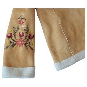 This vintage Bill Blass embroidered sherpa jacket offers a unique blend of cozy warmth and detailed floral embroidery. Crafted with a soft faux suede exterior and shearling-like lining, it’s perfect for cool weather.