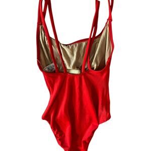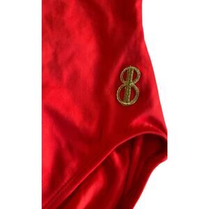 Vintage Bill Blass One Piece Red Swimsuit Women 6 Tank Solid Gold Logo High Cut