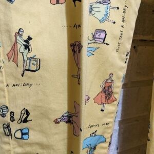 Vintage Bill Blass capri pants in yellow khaki with adorable pattern of dresses.