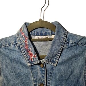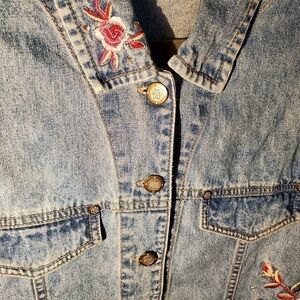 Vintage cottagecore Bill Blass sz M Embroidered jean vest. Beautiful rose embroidery and rhinestones. 6 button closure and 2 faux breast pockets.