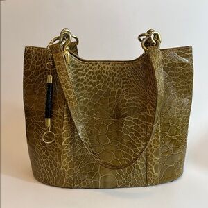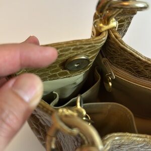 Vintage Biller Green Crocodile-Embossed Shoulder Bag with Gold Hardware