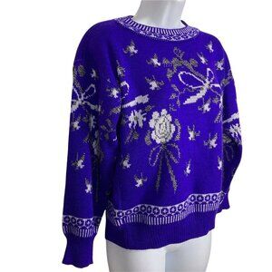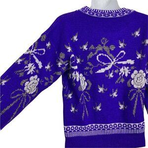 Vintage Billie Jo Purple Sweater Womens M L Roses Bows Fair Isle