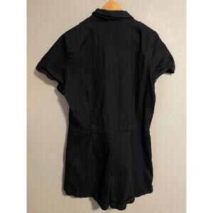 Vintage Billie Jo Retro Romper Womens 2XL Navy Denim Zip Front Short Sleeve