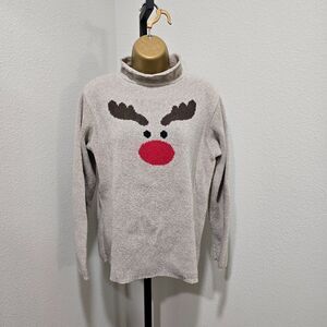 Vintage Binghamton Rudolph Sweater Womens S Beige Reindeer Mock Neck Holiday USA