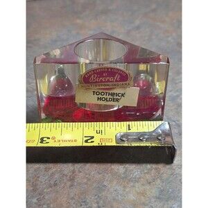 Vintage Bircraft Lucite Toothpick Holder Red Rose Original Labels