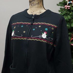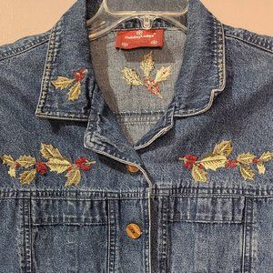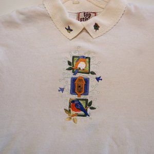 Vintage Bird & Birdhouse Crewneck Sweatshirt with Embroidered Peter Pan Collar, 23"Wx23"L, small stain, see photo