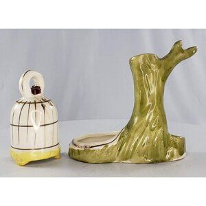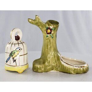 Vintage Bird Cage Tree Salt Pepper Shaker Set Occupied Japan Missing Cat