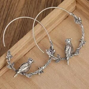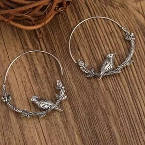 Vintage Bird Hoop Silver Earrings