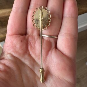 Lovely vintage stick pin signed by artist. Drawing is of a sweet bird carrying olive branch