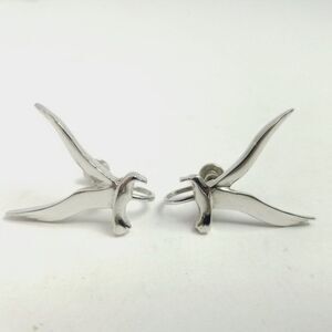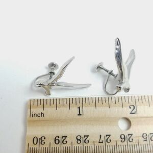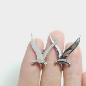 Vintage Birds in Flight Clip On Earrings, Silver Tone Seagulls, Minimal Design