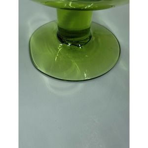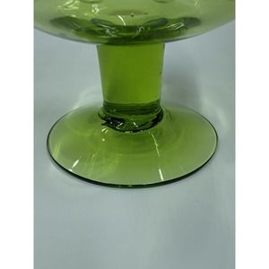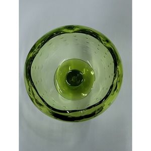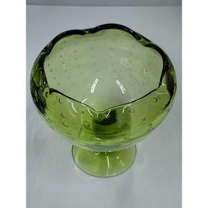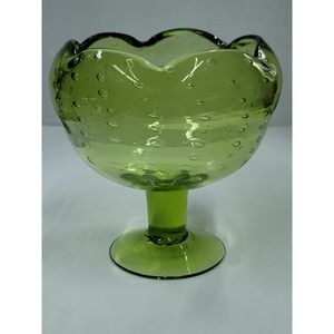 Vintage Bischoff Glass Hand Blown Green Compote Controlled Bubbles