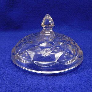 Vintage Biscuit Candy Jar Domed Lid Heavy Pressed Diamond Shape Glass 6"