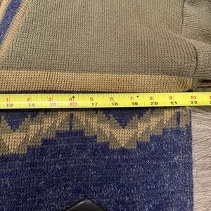 Vintage Bison Sweater Sz L Green Blue Button Cardigan Aztec Pattern Knit Retro