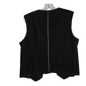 Bisou Bisou denim vest, Michele Bohbot vest, black denim vest size 12, Western-style vest, statement denim vest, tailored black vest, women’s denim vest, versatile layering piece, pre-owned Bisou Bisou, modern Western fashion, coachella, stagecoach, country