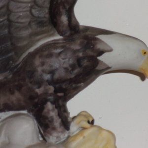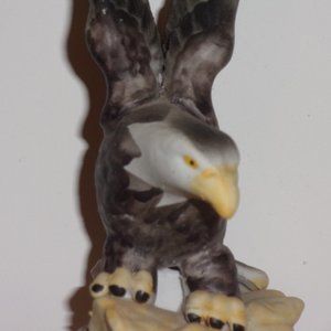 Vintage Bisque Ceramic/Porcelain Bald Eagle Standing On A Log Figurine Statue