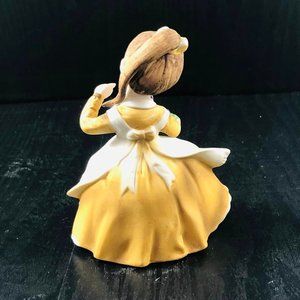 This charming vintage Lefton February Girl figurine is crafted of fine bisque porcelain. Adorned with a ponytail and violets, it's a unique collectible that captures the innocence of youth.