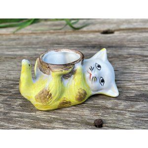 Vintage Bisque Porcelain Small Sad Kitty Cat Planter Vase